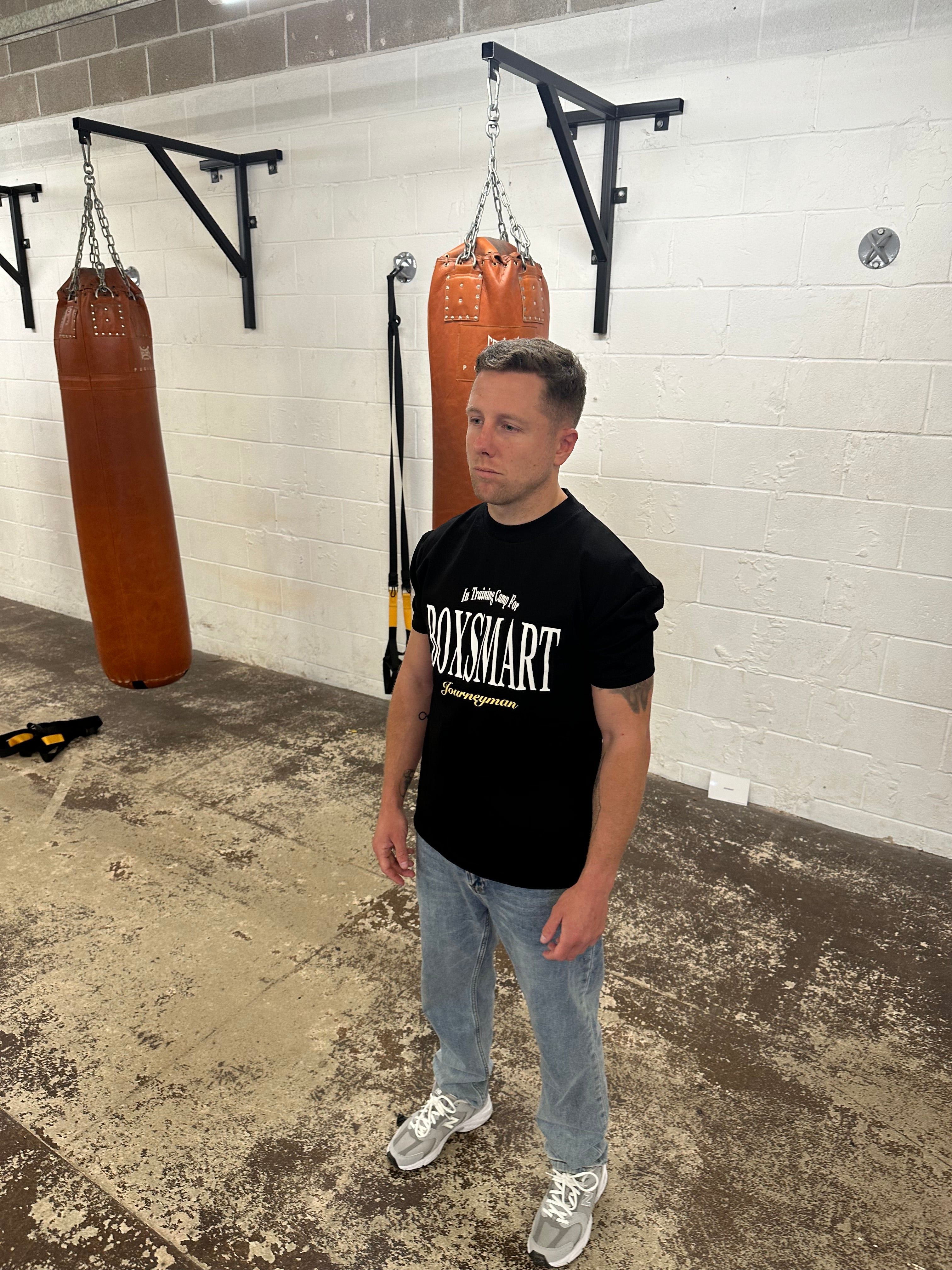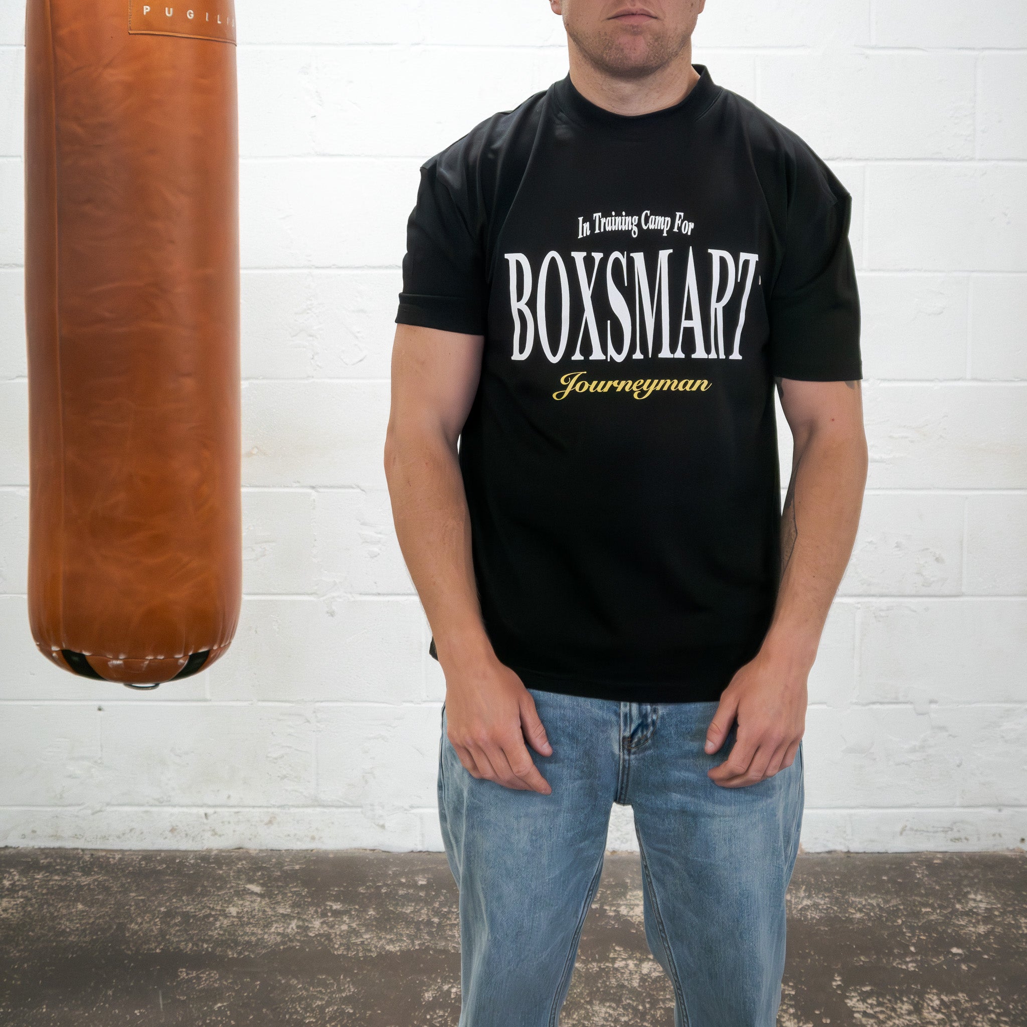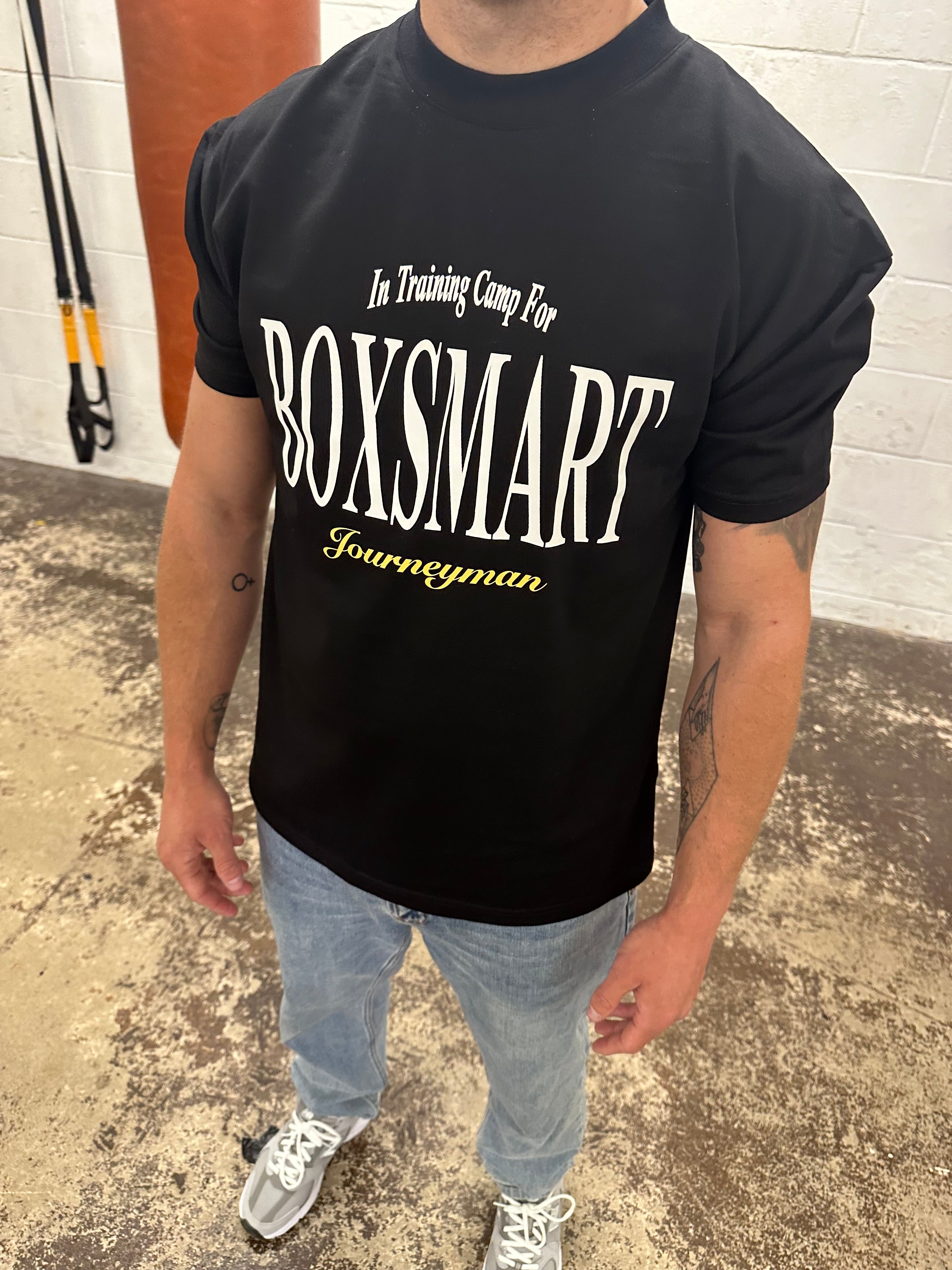 Our short sleeve Journeyman jersey t-shirt in jet black was designed to represent anyone on a journey. It is an oversized fit in a medium weight cotton. Ribbed crewneck collar. Boxsmart branding on the centre chest.
