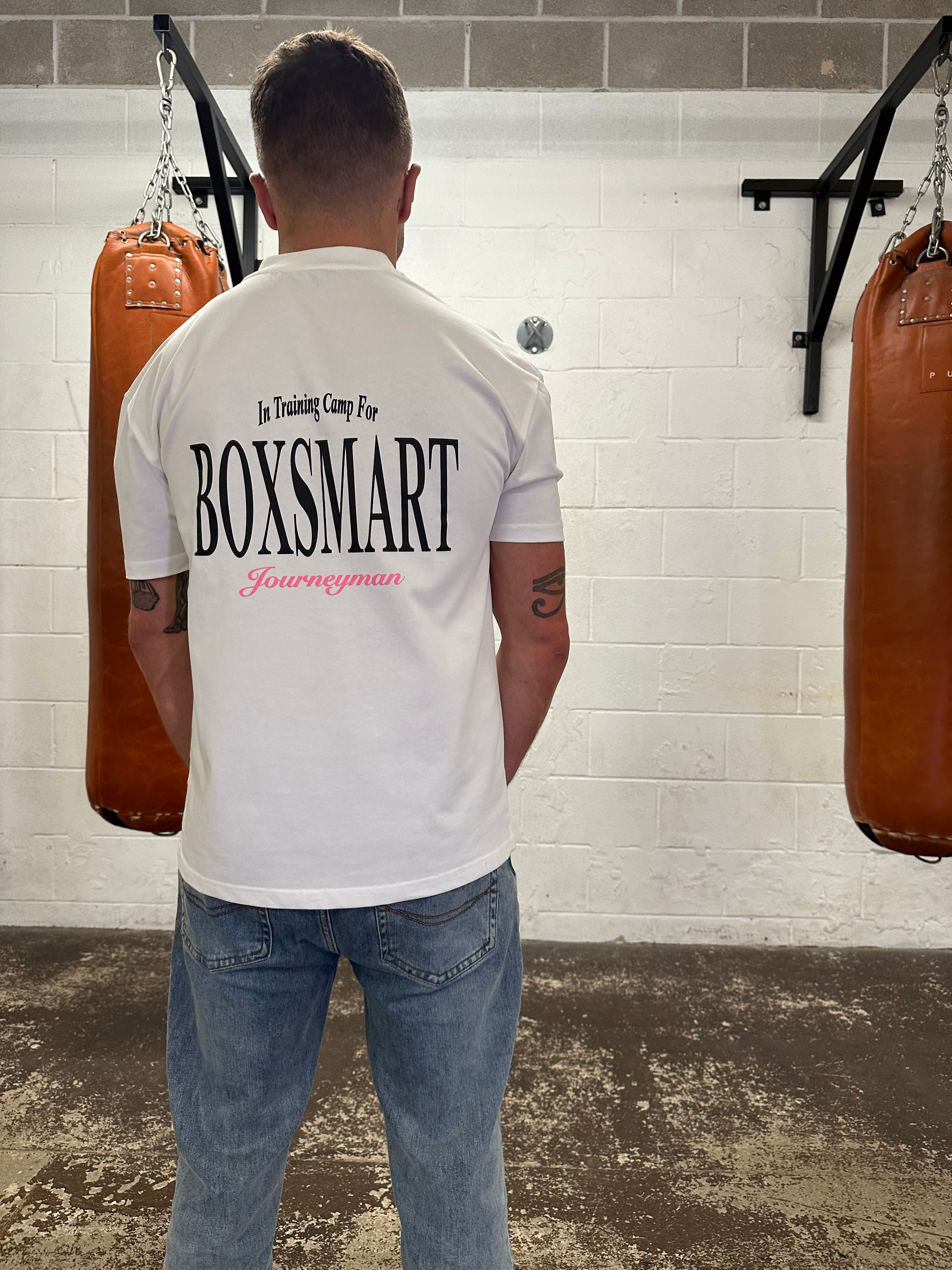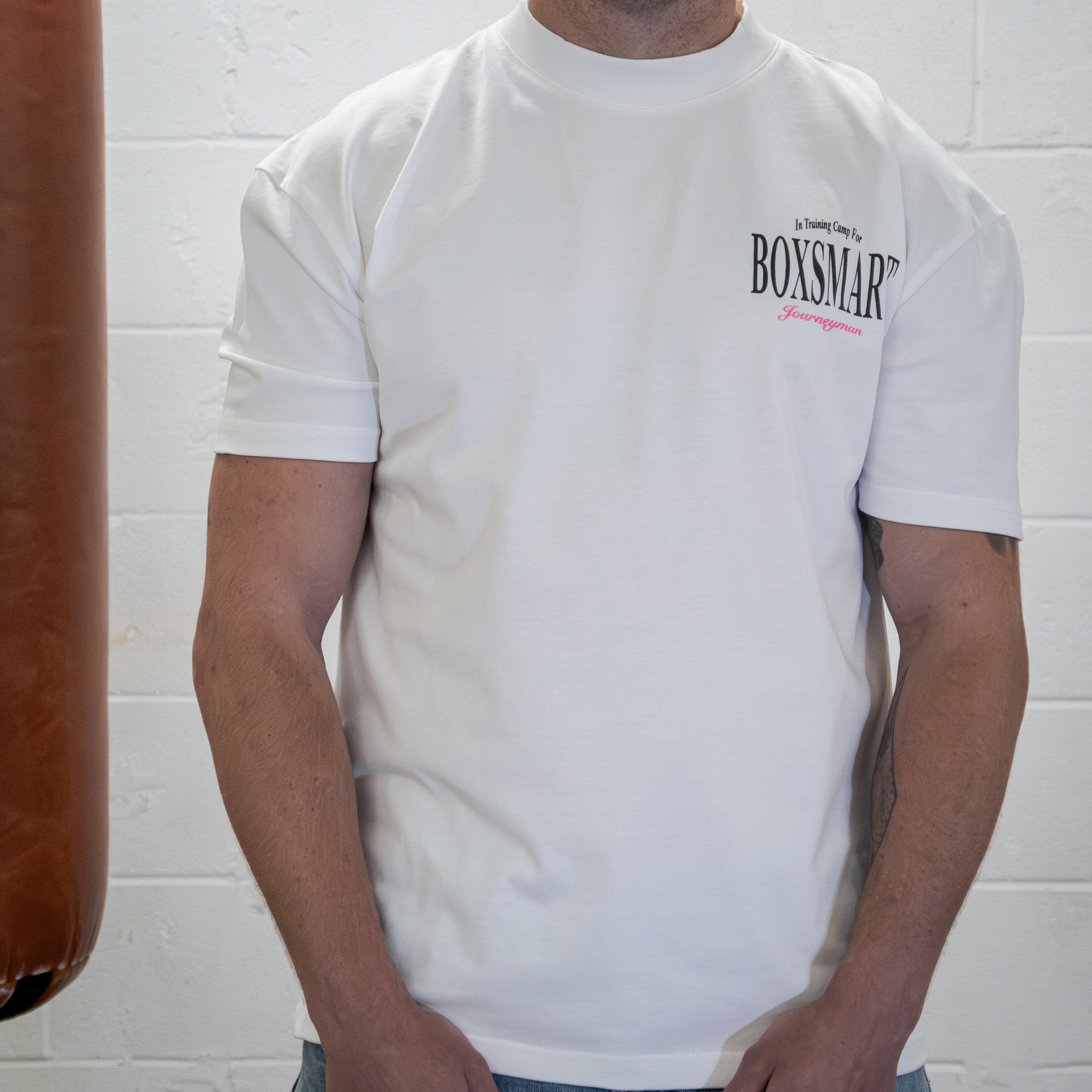 Our In Training Camp Journeyman t-shirt in white with pink detailing has been designed to represent every one who is on a journey, again to wear casually or dressed up. This is a meaningful piece which has been purposely designed to be worn with purpose whilst remaining class.