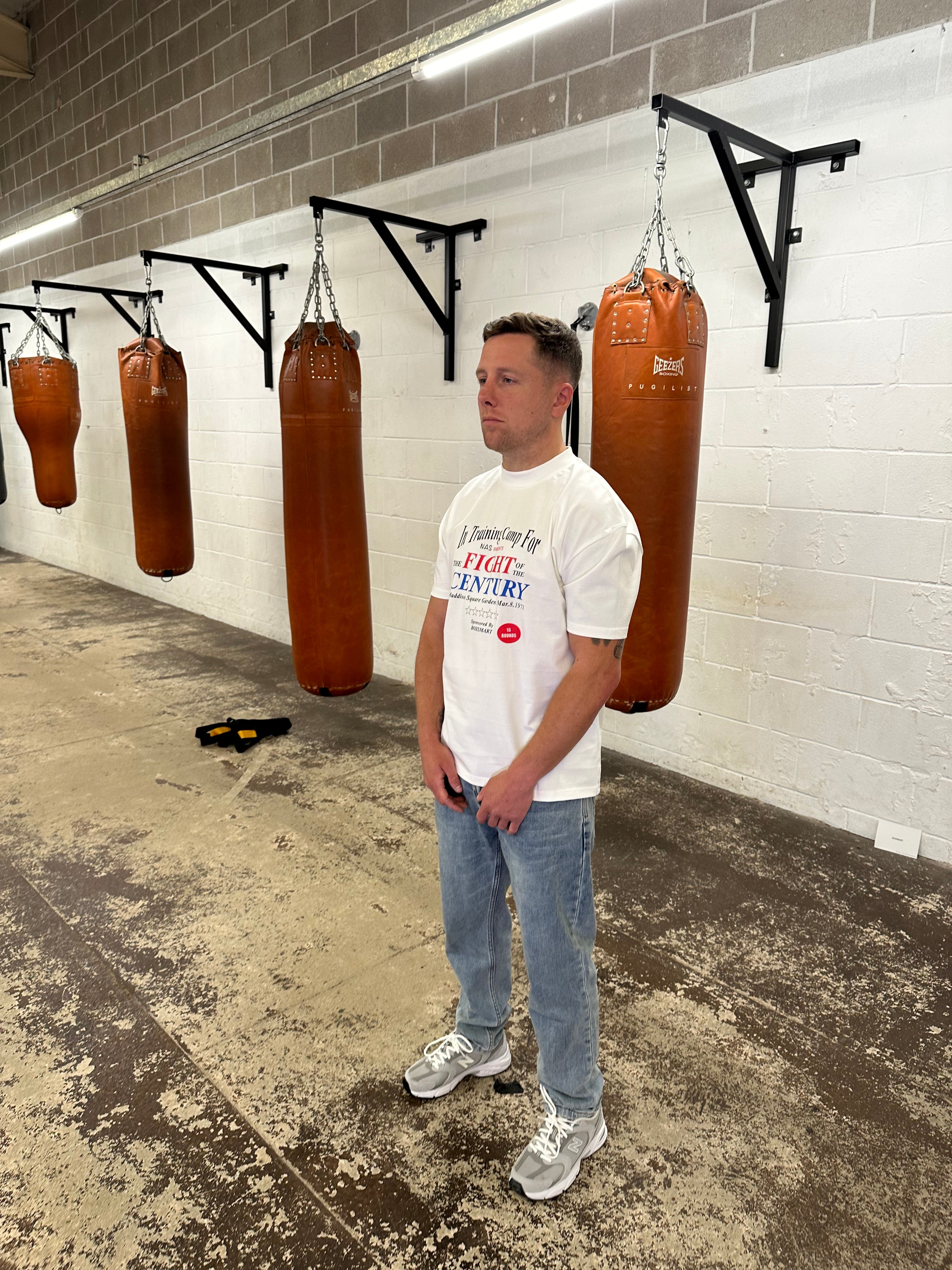 The Fight of The Century white t-shirt was inspired by Muhammad Ali's fight against Joe Frazier in 1971. It is by far our most detailed garment to date. Again this has been designed to wear casually or dressed up. This is a iconic piece enriched with history.